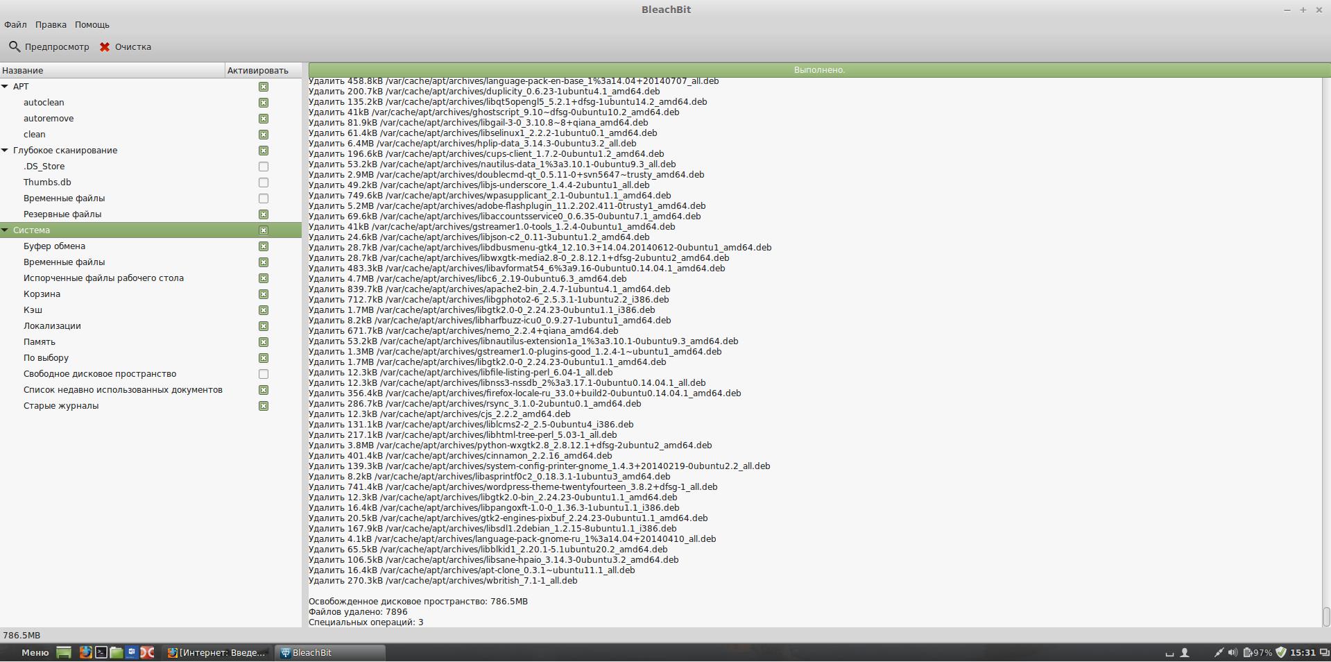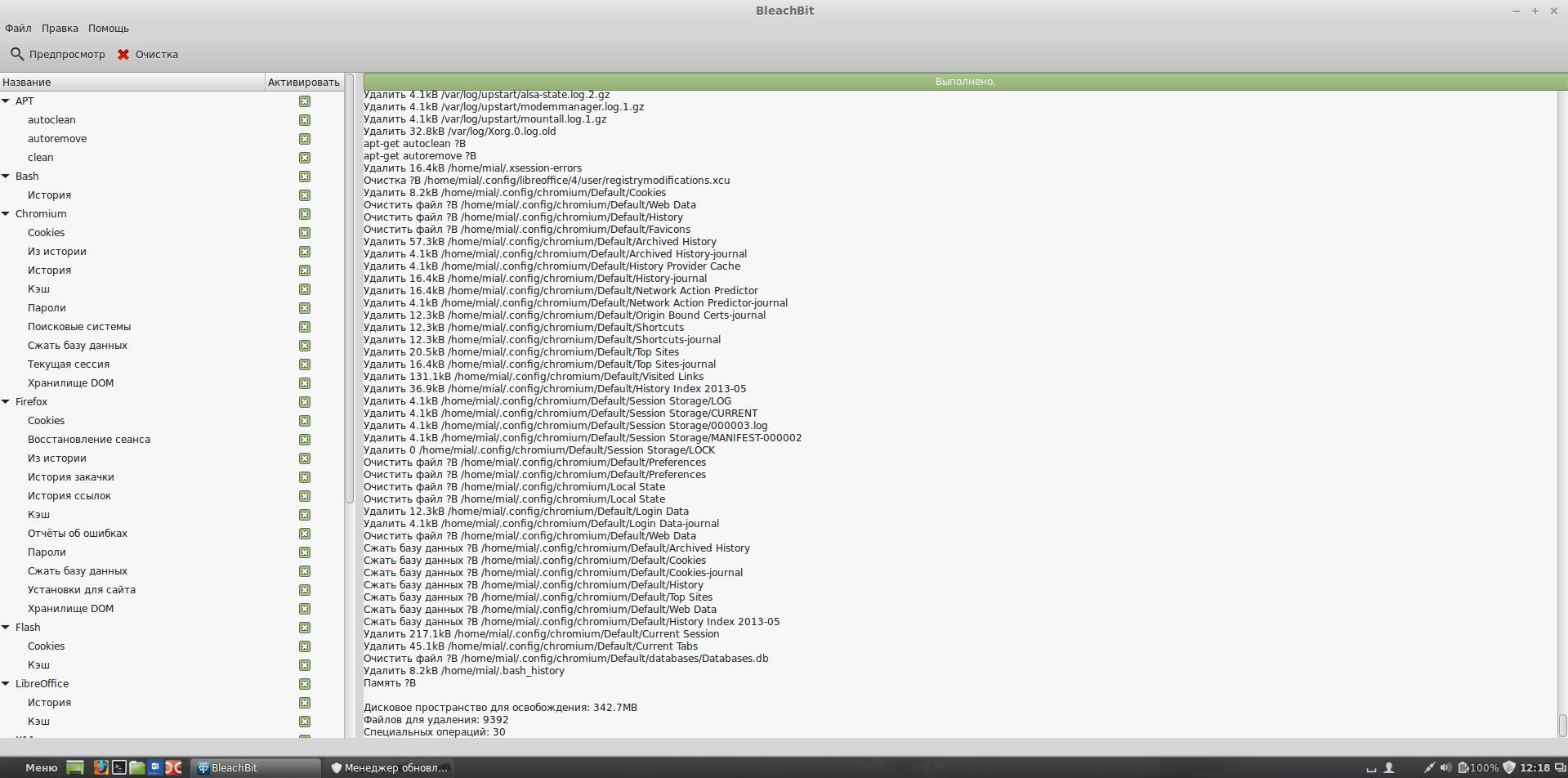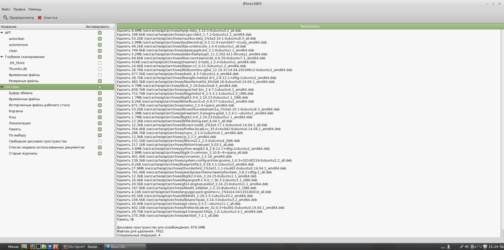 У пользователей Linux есть замечательная программа, которая сама найдёт весь мусор на компьютере и сама всё очистит, естественно, посоветовавшись с пользователем. Эта программа называется BleachBit.