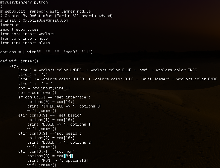 vim /usr/share/websploit/modules/wifi_jammer.py
