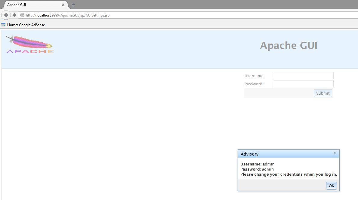 Нам нужно перейти по адресу http://[HOST]:9999/ApacheGUI/