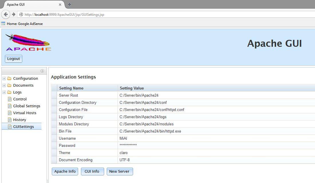 Apache GUI является кроссплатформенным, бесплатным инструментом, код которого открыт. Он создан для помощи в администрировании веб-серверов Apache. Функциональность приложения Apache GUI включает:
