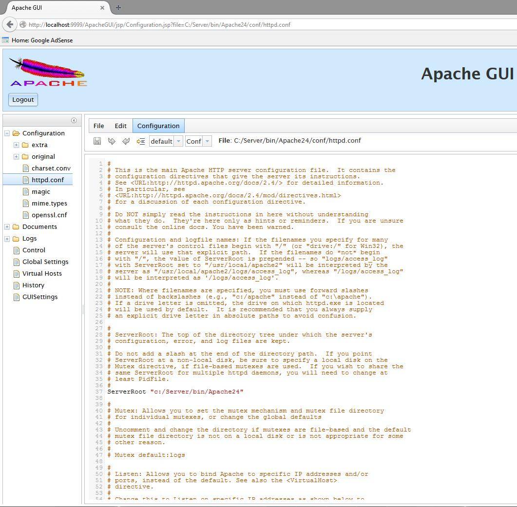 ApacheGUI не добавляет каких-то новых возможностей, которых бы у нас не было, при полном доступе к файловой системе. Настройка конфигурационных файлов Apache происходит как обычное редактирование текстового файла: я ожидал большего, каких-нибудь списков управляющих директив с переключателями и т. д. Да и не нужно каждый день редактировать настройки сервера. В большинстве случаев, единожды установив и настроив, веб-серверу больше не уделяют внимание.