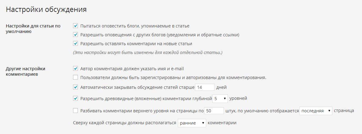 Оставлять доступной для комментариев старые посты не является хорошей идеей, если вы хотите всё поддерживать в чистоте. Чтобы закрыть комментарии к старым сообщениям в административной панели WordPress'а, перейдите к Настройки→Обсуждение→Другие настройки комментариев и поставьте галочку для «Автоматически закрывать обсуждение статей старше ×× дней» (поставьте сами желаемое количество дней). Популярным выбором является 14 дней, что, вроде бы, хорошо для дэдлайна.