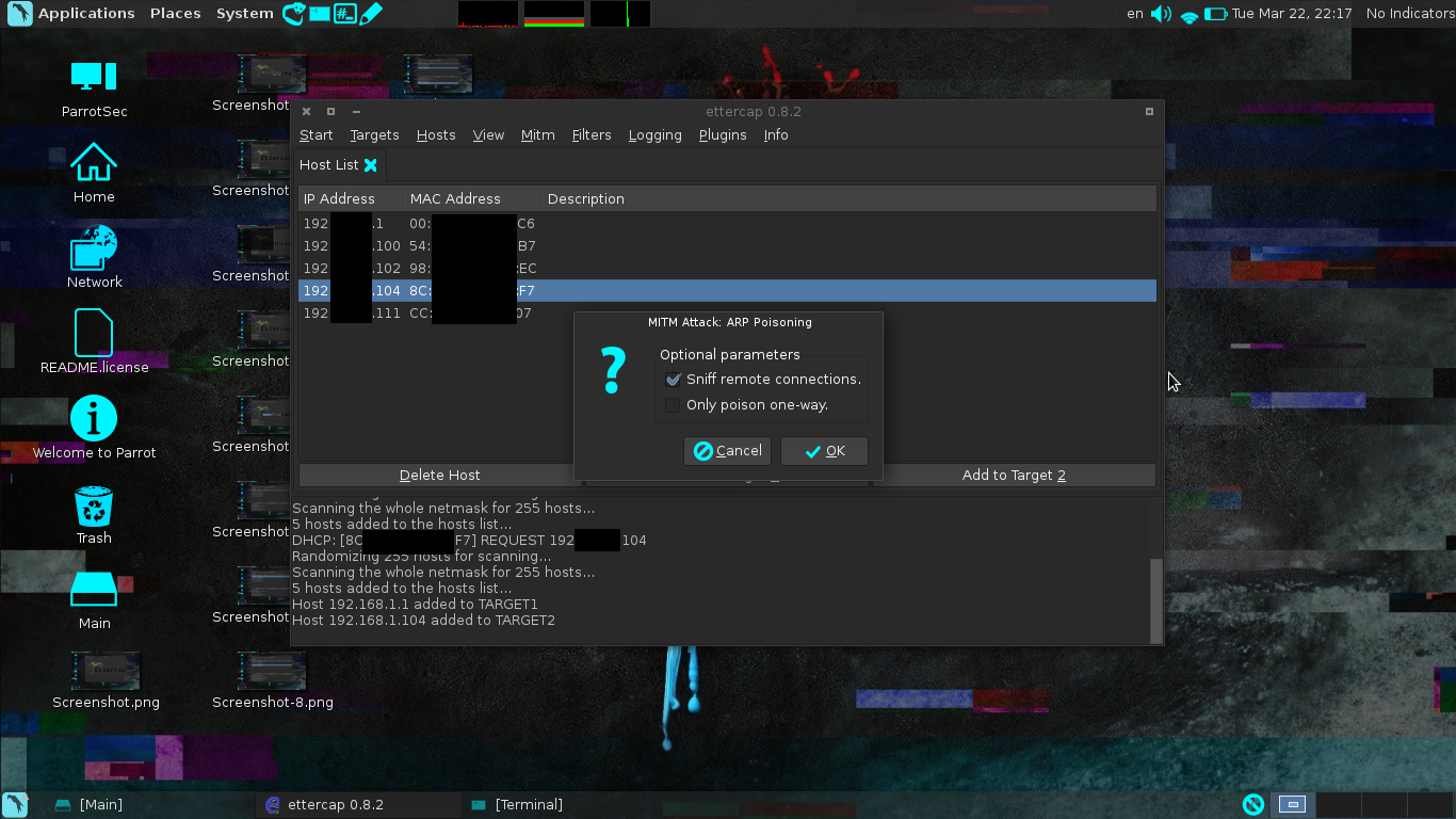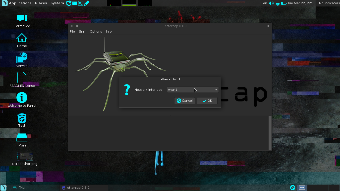 А для этого мы юзанем программу Ettercap (ARP-спуфинг)