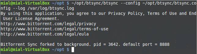 Видим, что BitTorrent Sync был запущен как демон с PID 3642. Запомните этот номер, если в дальнейшем вы захотите вручную завершить этот процесс или послать ему какой-либо другой сигнал.