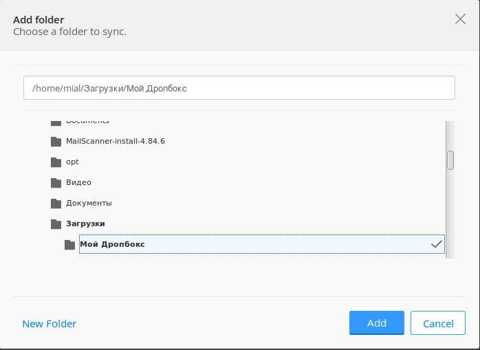 Когда готово, нажимаем Next (далее). Появляется окно для выбора папки, куда будет происходить синхронизация: