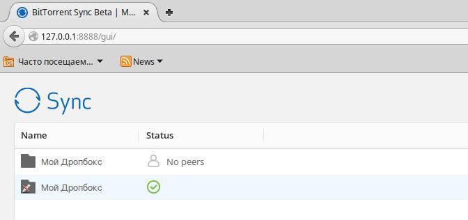 Для дальнейшей тонкой настройки посмотрите файл README в директории ~/opt/btsync, а я пока на этом остановлюсь.