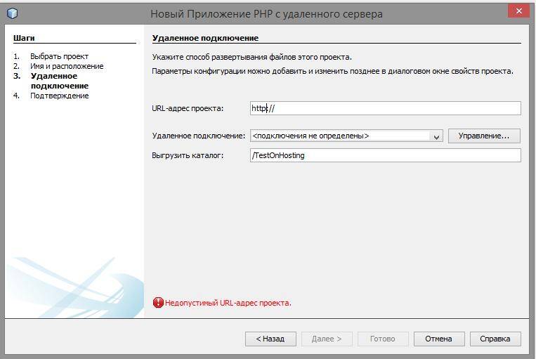 У нас ошибка «Недопустимый URL-адрес проекта». Всё верно, ведь мы ещё не прописывали никакой адрес.