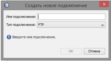 Откроется новое окно. В поле «Имя подключения» вписываем любое имя. Там где «Тип подключения» оставляем без изменений, т. е. FTP. Нажимаем ОК.