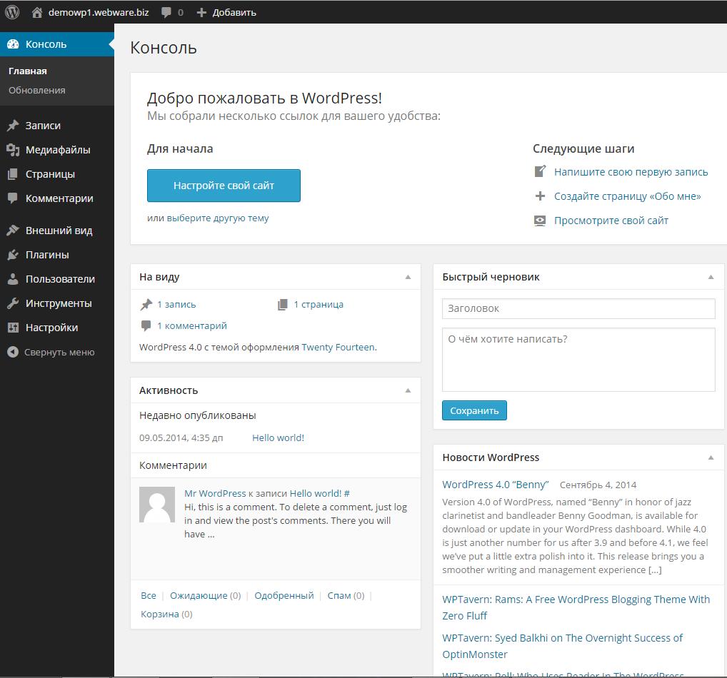 3. Нас встречает вот такая панель управления: