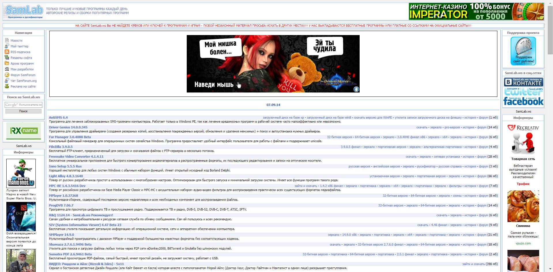 Вот так выглядит один из посещаемых мной сайтов с рекламой (просто образец того, о чём я говорил — полуголые тётки, казино, сомнительные товары и просто непонятная дрянь):