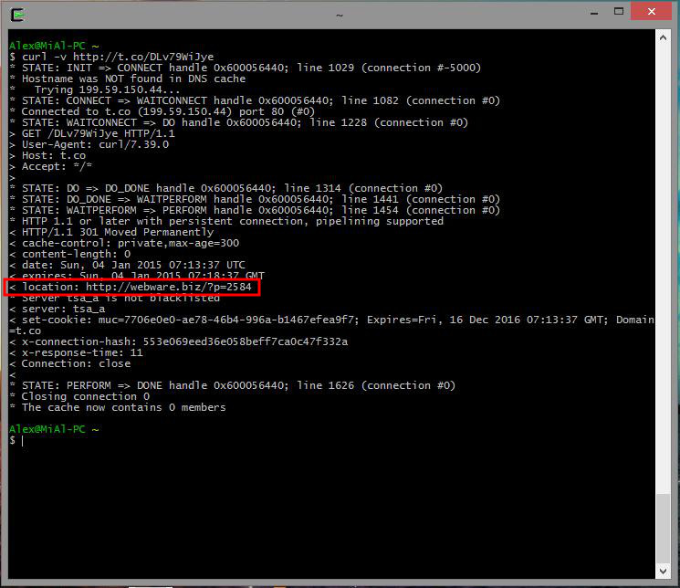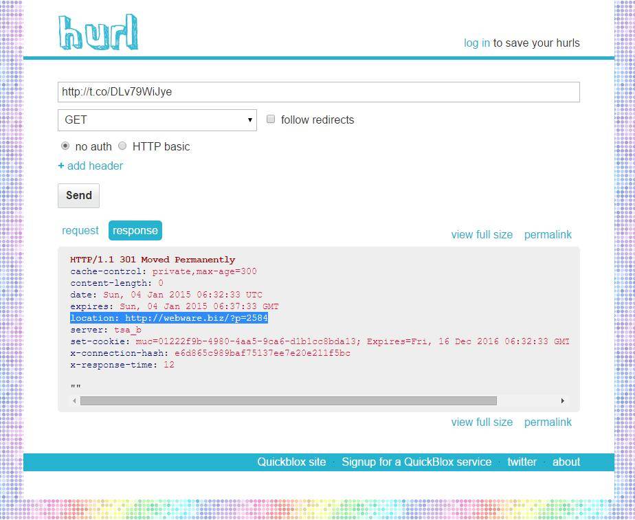 Давайте, для примера возьмём ещё какую-нибудь короткую ссылку, полученную в одном из многочисленных сервисов укорачивания ссылок. Например эту https://t.co/DLv79WiJye: