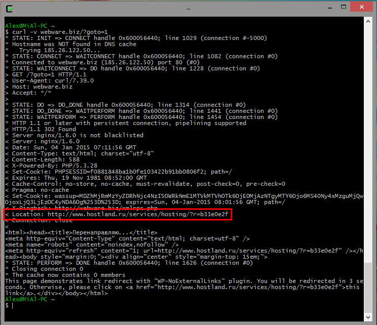 Пользователям Linux, как всегда, повезло ещё больше, они могут в командной строке просто набрать curl -v адрес_ссылки, например:
