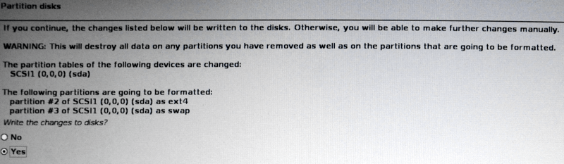 - Далее у вас будет один последний шанс осмотреть вашу конфигурацию диска перед тем, как установщик сделает необратимые изменения. После нажатия Продолжить, установщик отправится работать, а вы уже имеете почти завершённую установку.