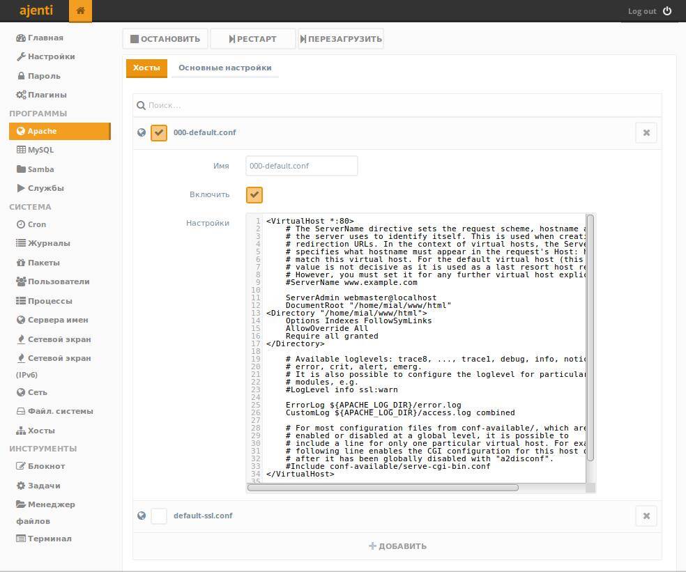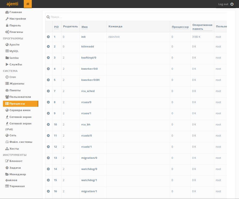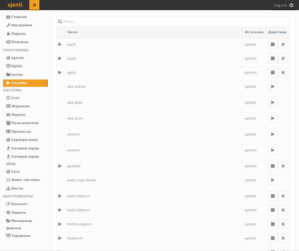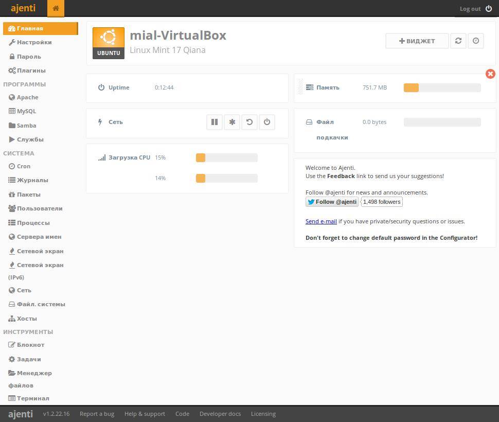 Веб-интерфейс Ajenti исключительно интуитивный и простой в использовании. Здесь несколько примеров функциональности Ajenti.