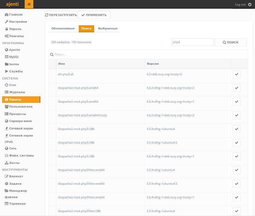 Ajenti предлагает веб-интерфейс для установки и обновления пакетов VPS.