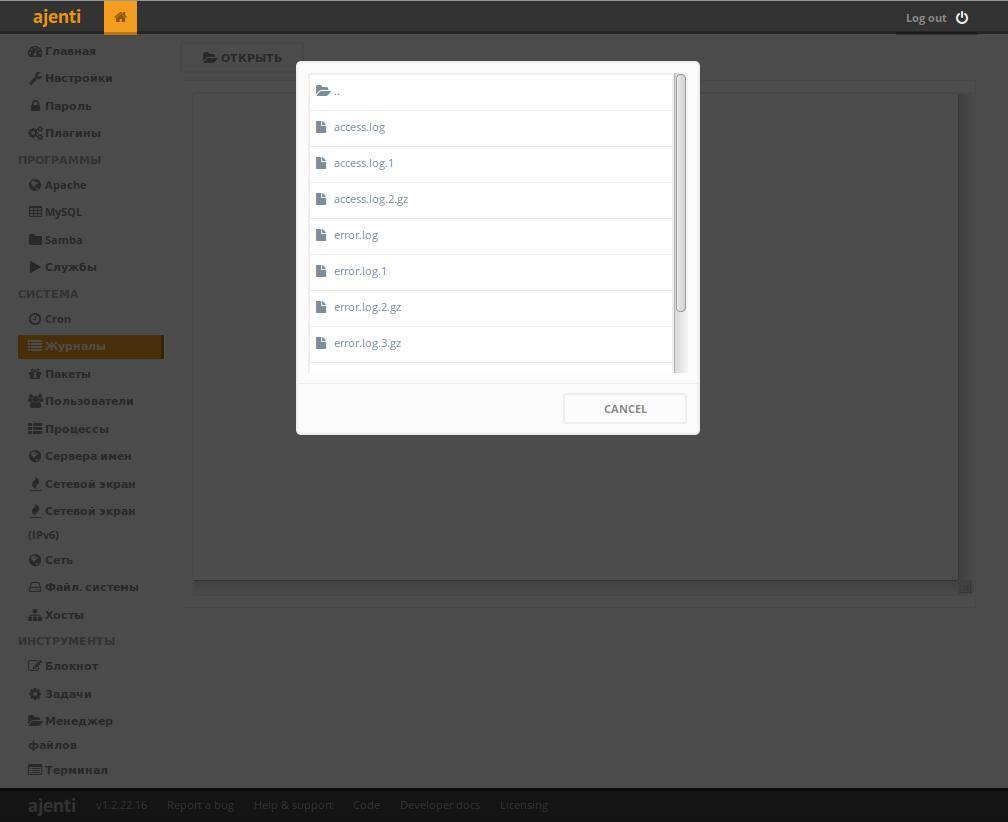 Вы можете перемещаться по системный логам в /var/log через веб-интерфейс Ajenti.