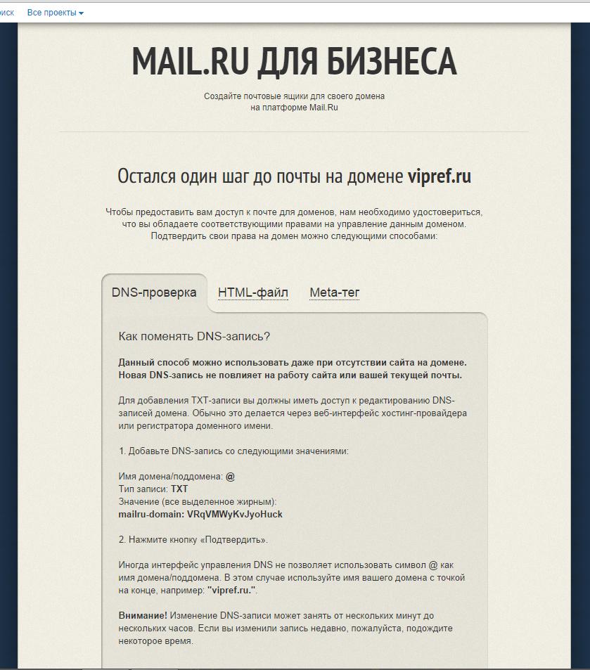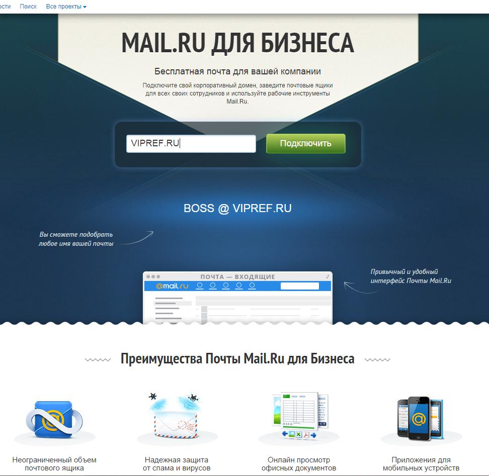 Переходим на специальный раздел сайта mail.ru и вводим свой новый домен (я ввожу свой):