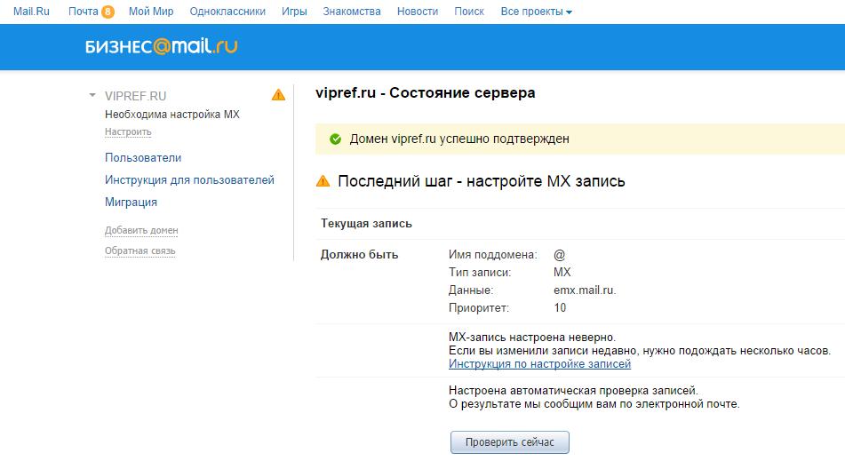 Сообщаем своим друзьям и партнёрам свой новый красивый адрес и наслаждаемся своей собственной почтой, на своём домене с интерфейсом mail.ru.