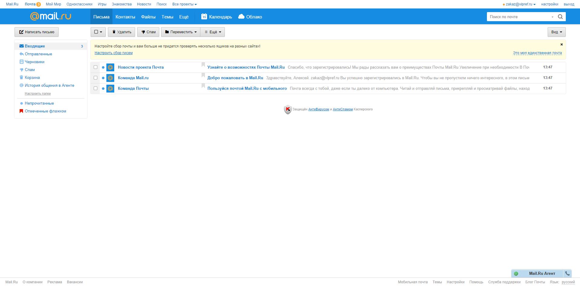 Ура-ура мы в привычном почтовом ящике mail.ru, хотя мой почтовый адрес сейчас zakaz@vipref.ru: