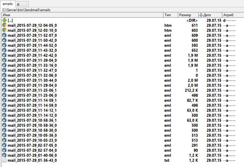 Сохраните файл и перезапустите сервер. Отлично, теперь все отправленные письма будут сохраняться в каталоге C:ServerbinSendmailemails