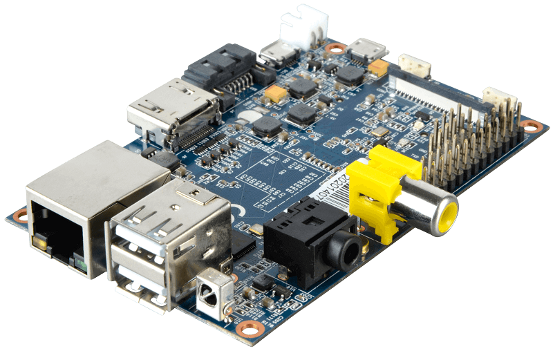 Banana Pi и Pro — 32-разрядные одноплатные компьютеры, производимые компанией LeMaker из Китая. Подобно Raspberry Pi, они оборудованы двухъядерными процессорами A20 частотой 1 ГГц и 1 Гб оперативной памяти. На Banana Pi вы найдёте 26-пиновые расширенные контакты, включая I²C, SPI, UART и CAN. Модель Pro, вдобавок к этому, оборудована 40-пиновым разъёмом GPIO. Стоит так же отметить, что устройства имеют порты ethernet и SATA 2.0, который поддерживает диски объёмом до 4 Тб.