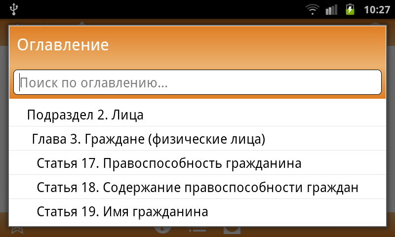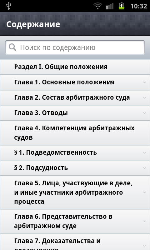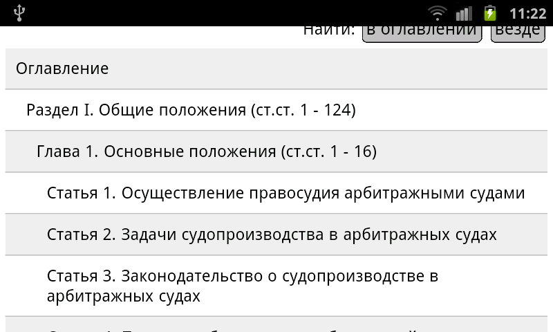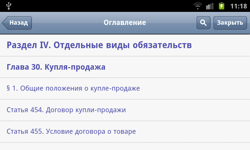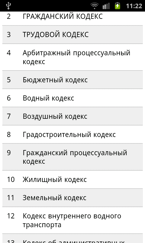Меню оптимизировано для тач-экранов. В главном окне программы мы видим список кодексов, которые доступны без подключения к интернету.