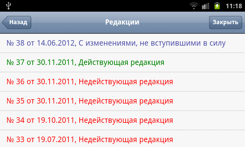 Особенностью, по сравнению с программой "Право.ру" является возможность выбора редакции документа.