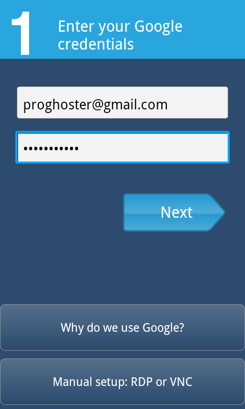 А теперь вводим данные аккаунта гугла – по этим данным наши телефон и компьютер будут находить друг друга в бескрайнем Интернете.