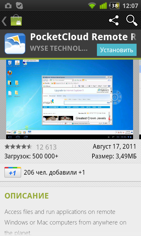 - на телефоне должна быть установлена программа для подключения к удалённому столу — PocketCloud (она бесплатная).
