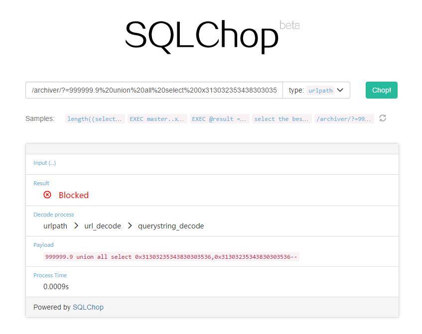 is_sqli API (в sqlchop.py) выявляют SQLi, дают оценку в качестве некоторой величины, вы можете настроить порог этой величины и вызвать действие в соответствии со сценарием использования.