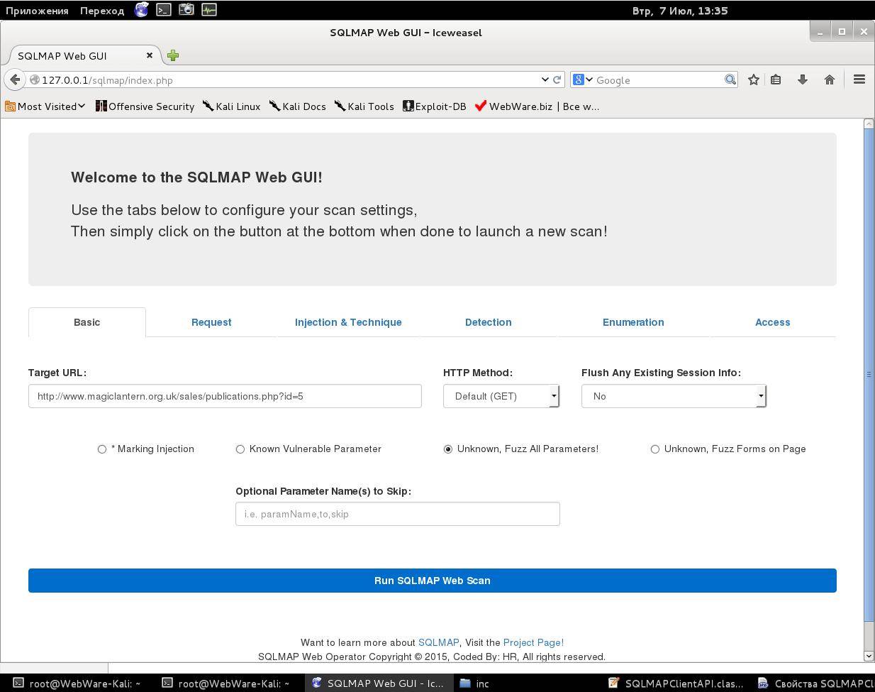 Установка SQLMAP-Web-GUI на Kali Linux