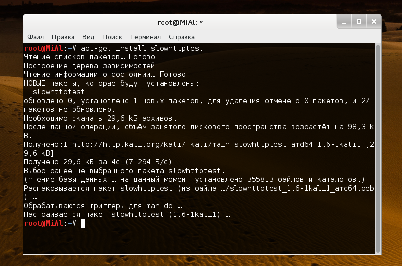 Этот набор команд делает следующее: скачивает самую последнюю версию SlowHTTPTest, распаковывает её и переходим в каталог с программой: