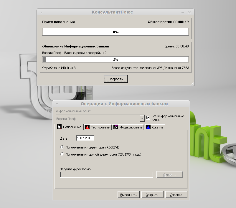 Т.е. для обновления нам достаточно скопировать файлы обновлений в каталог RECEIVE и запустить наш ярлык.