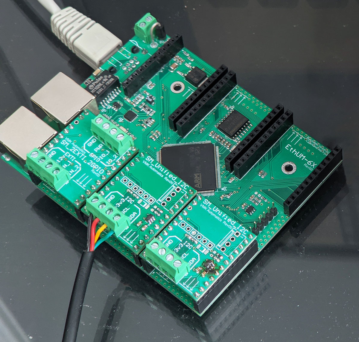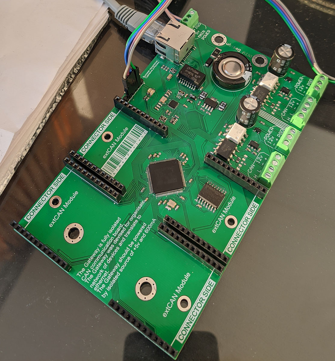 Для связи SCADA с устройствами использовался разработанный нами шлюз Ethernet – CAN. Также была экспериментальная плата на 6 модулей, которая напрямую подключалась к Ethernet.