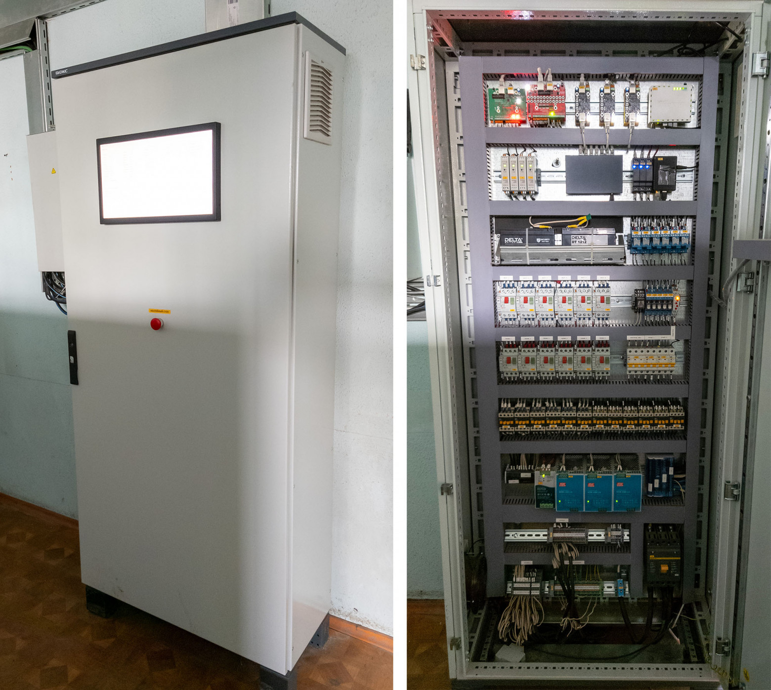 На смом деле оочень смущали открытые платы в шкафу. Однако, за всё время эксплуатации ни одна плата в щитах не сдохла. Нам почему-то казалось их будут долбить отвертками и т.д., но нет.