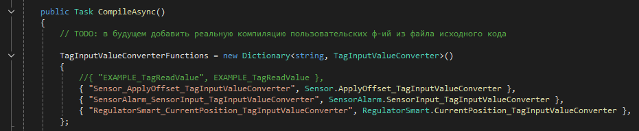 Да, функции обработки для разного оборудования, пока не компилируются на лету при запуске, как планировалось, но это только из-за Native AOT компиляции в машинный код. Если компилировать проект стандартно в IL код, никаких проблем с компиляцией функций на C# на лету не будет, я так уже делал.