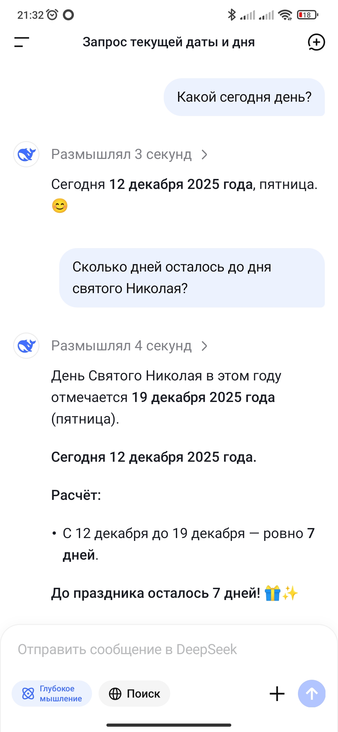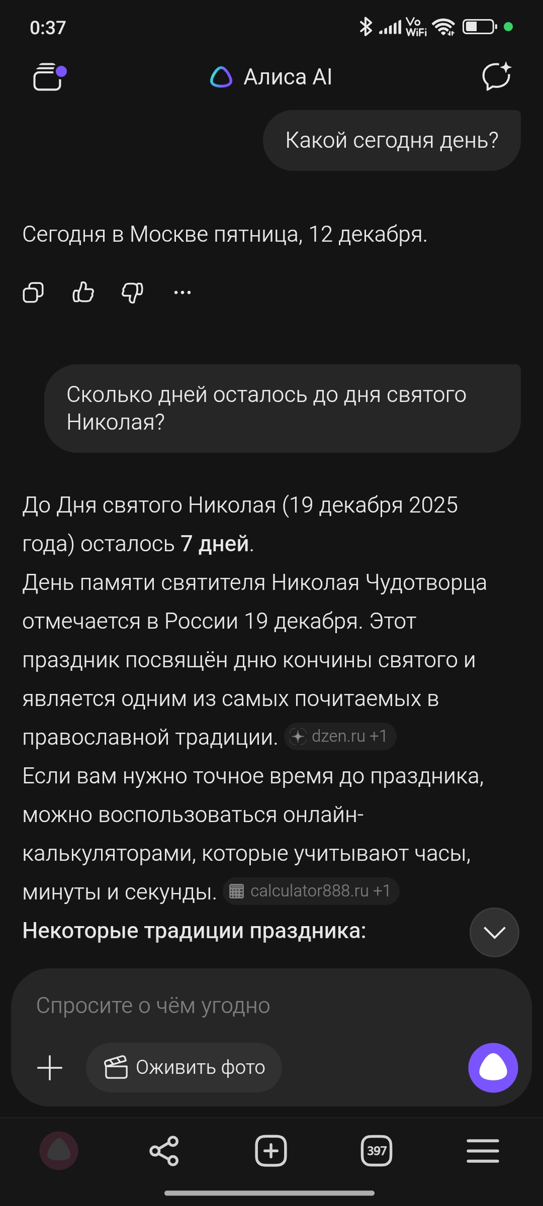 За 5 минут до этих скринов, этот же вопрос был задан колонке, только она сказала что сегодня 11 декабря, а до дня святого Николая осталось 86 дней