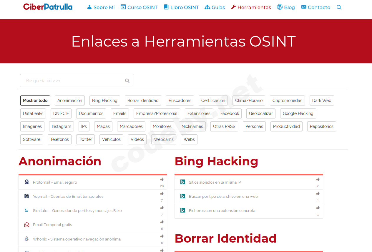 Сайт (https://ciberpatrulla.com/links/), хоть и не доступен на английском языке, но все же имеет огромные возможности, от списка безопасных email сервисов, до списка отдельных онлайн утилит для facebook“a. И даже без знания испанского, можно безо всяких усилий его использовать: