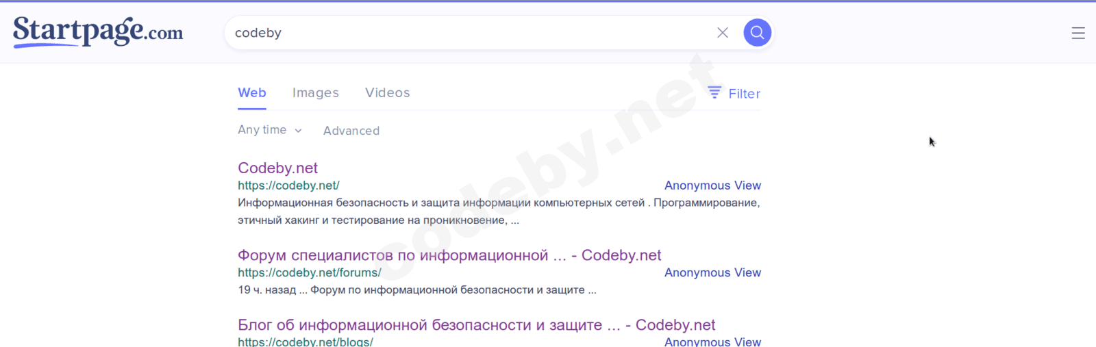 Все эти поисковики имеют свои функции. Вот, к примеру, startpage.com, обладает функцией анонимного посещения сайта: