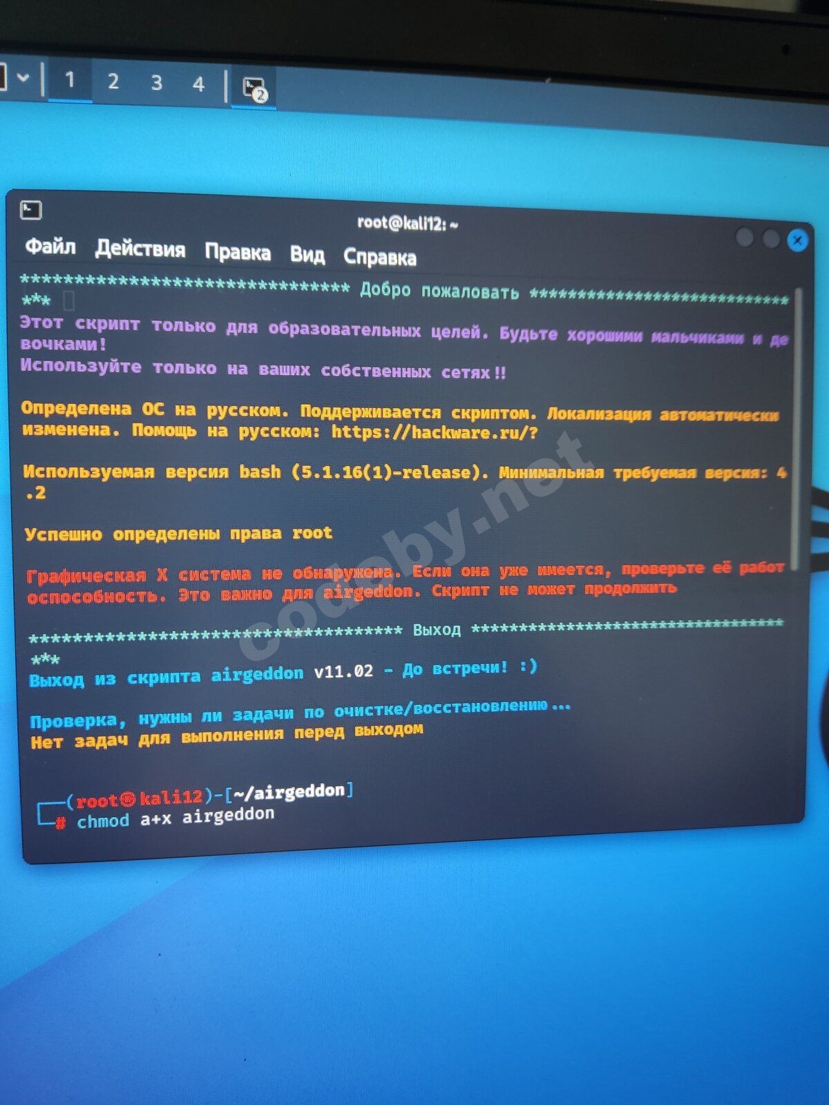 Попробуй так -Всем привет, при запуске airgeddon на kali. Вылетает ошибка отсутствует x система. Ставила с githab .подскажите как с этим бороться. Kali стоит второй операционной. Заранее спасибо