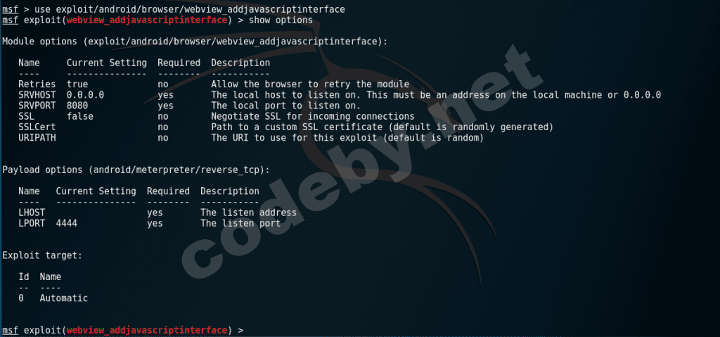 И так если вы обнаружили в своем сегменте сети (на одном WiFi к примеру ) или заведомо известно что ваша жертва использует девайс на андроиде версии ниже чем 4.2.x то этот эксплоит вам подойдет.