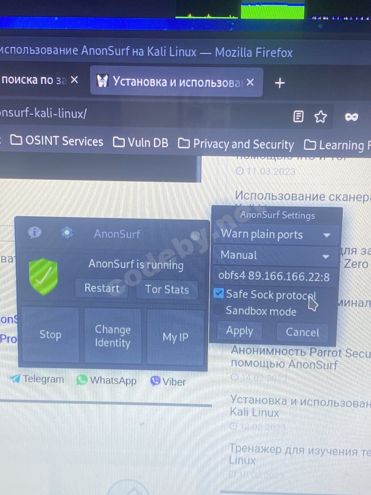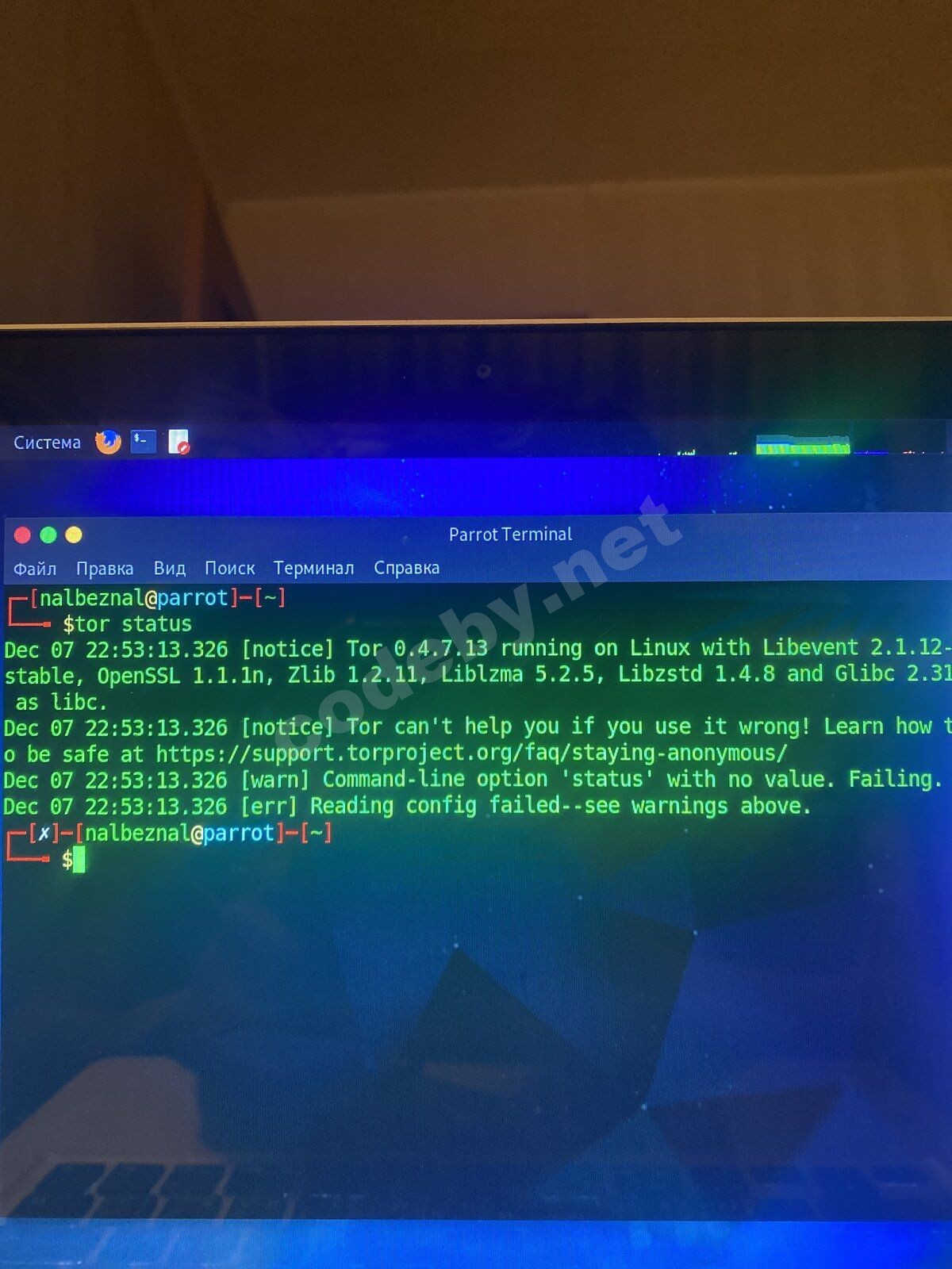 Не грузит страницы при включённом anonsurf в parrot os
