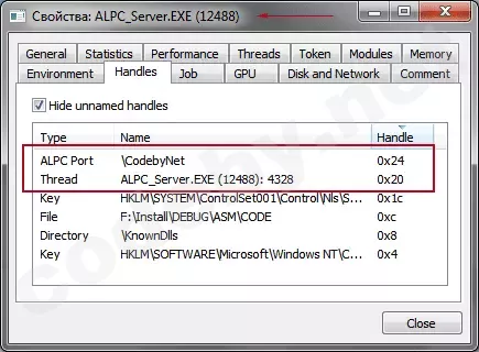 OwnerProcess : fffffa800460e060 (ALPC_Server.EXЕ)