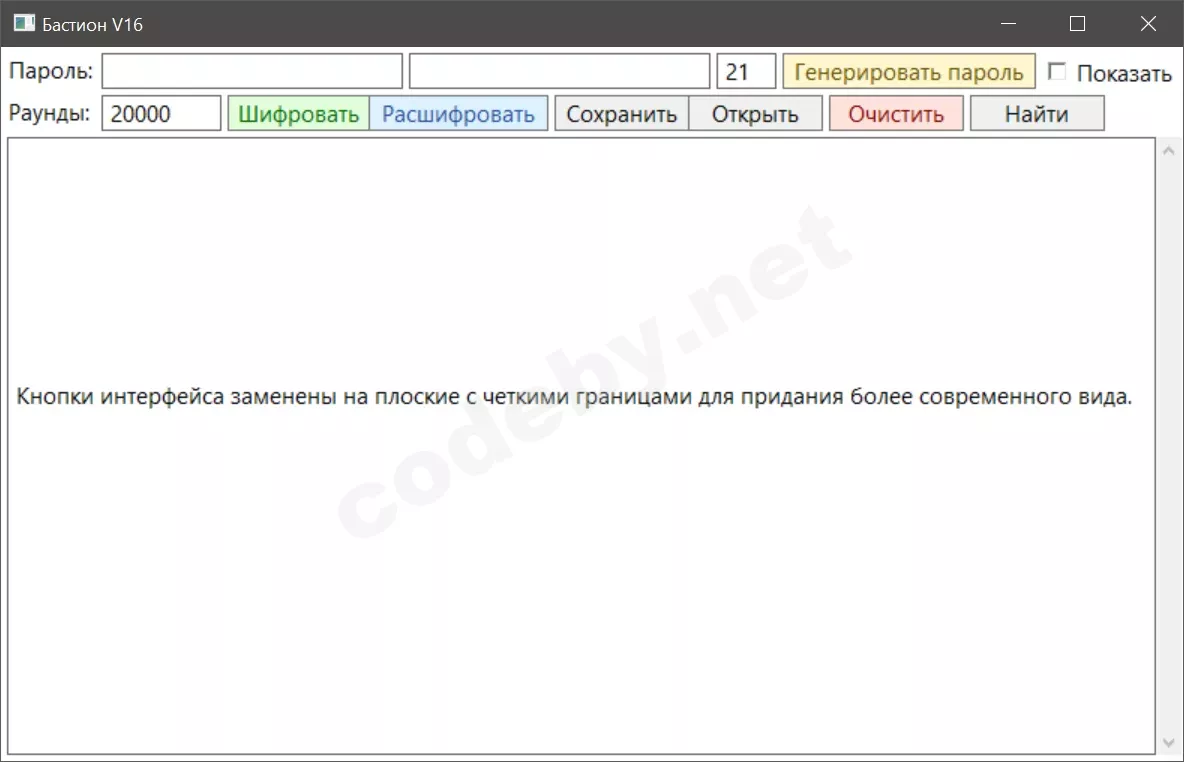 Программа проверяет, что пароли совпадают и есть текст для шифрования.