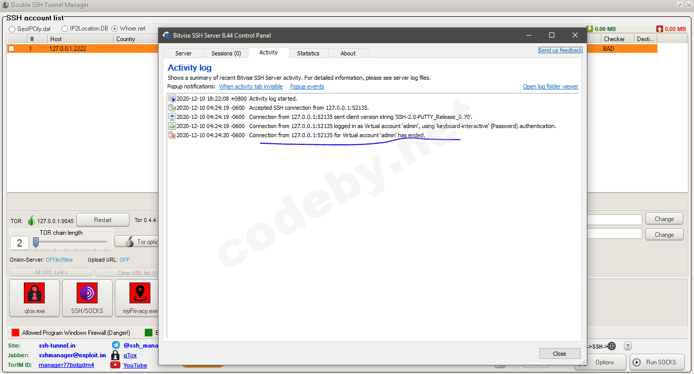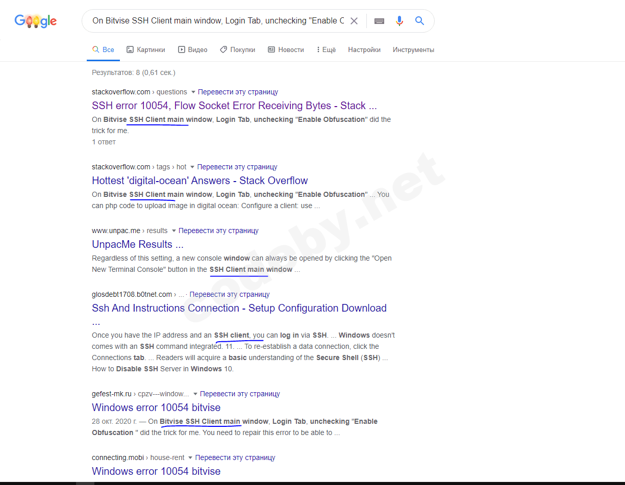Мля. Есть такой поисковик GOOGLE. В нём можно быстро находить ответы на вопросы. Домашнее задание для тебя: открыть сайт google.com, ввести в окошко "bitvise forcibly closed", нажать поиск, пройти по первой ссылке на stackoverflow, попробовать применить найденный там совет. Так понятно?