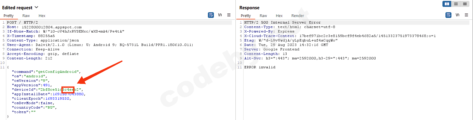 Например, в теле я менял значение deviceID. Менял буквально один символ (цифру на цифру).Смотря что в теле ты меняешь, по этому скрину не понятно что именно.