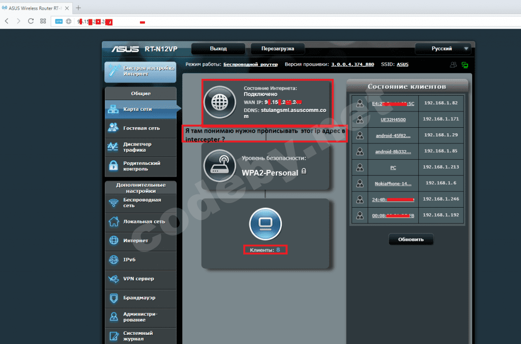 для работы с интерцептер тебе нужно быть подключенным к локальной сети. Не нужен тебе роутер, просто доступ в сеть.Не хочу тупить в очередной разЯ так не понял , с моей стороны (мне) нужен wifi роутер для работы с intercepter? Спрашиваю , так как у меня пк подключен на прямую через интернет кабель . Не совсем понял про выбор режима wifi (может в моем случае нужно выбрать режим-сетевая карта)в intercepter ?
