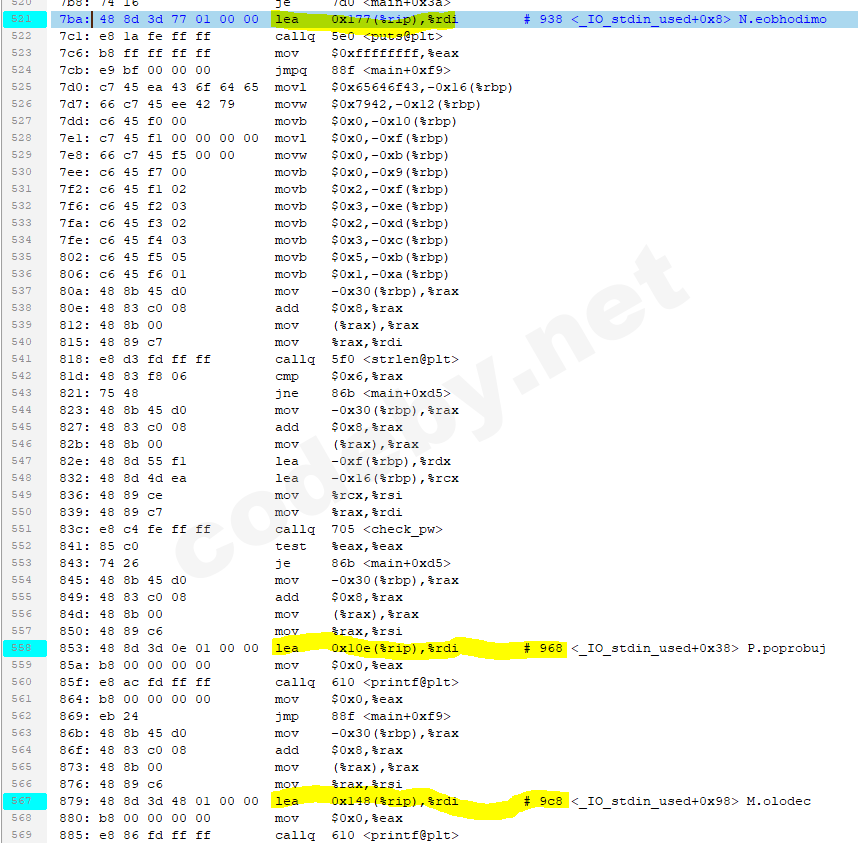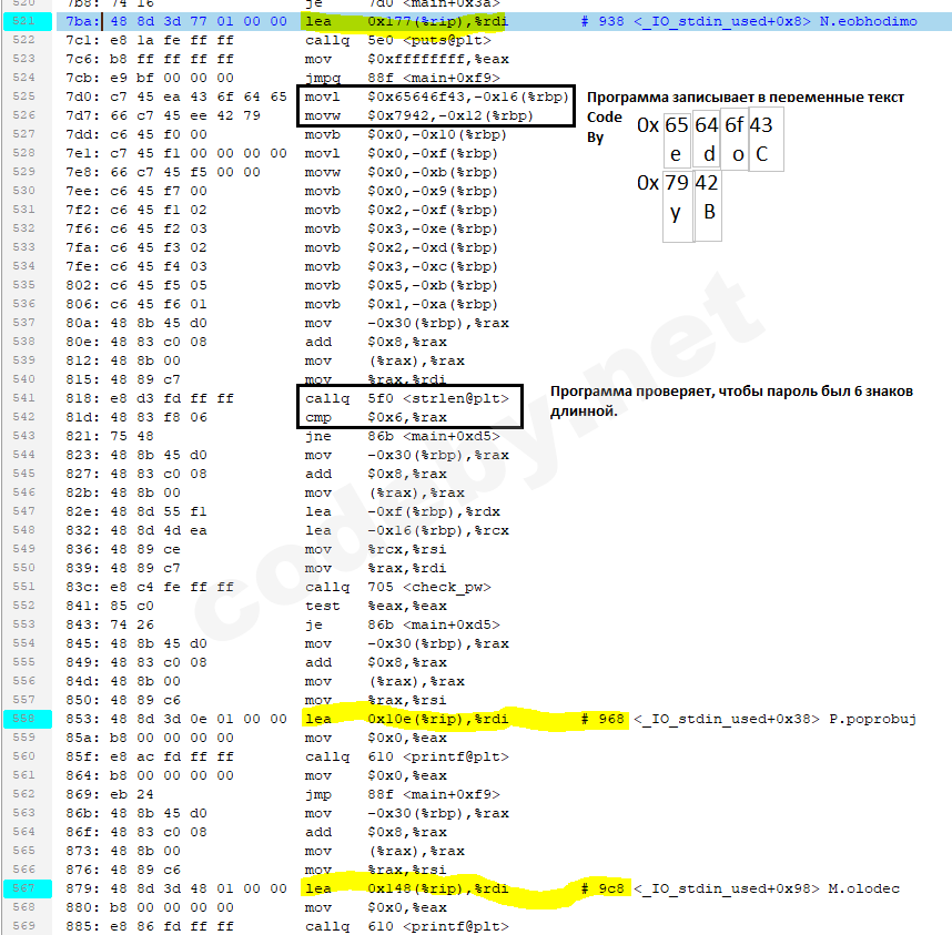 В блоке <check_pw> виден цикл и какие-то сравнения, не особо понятные.
