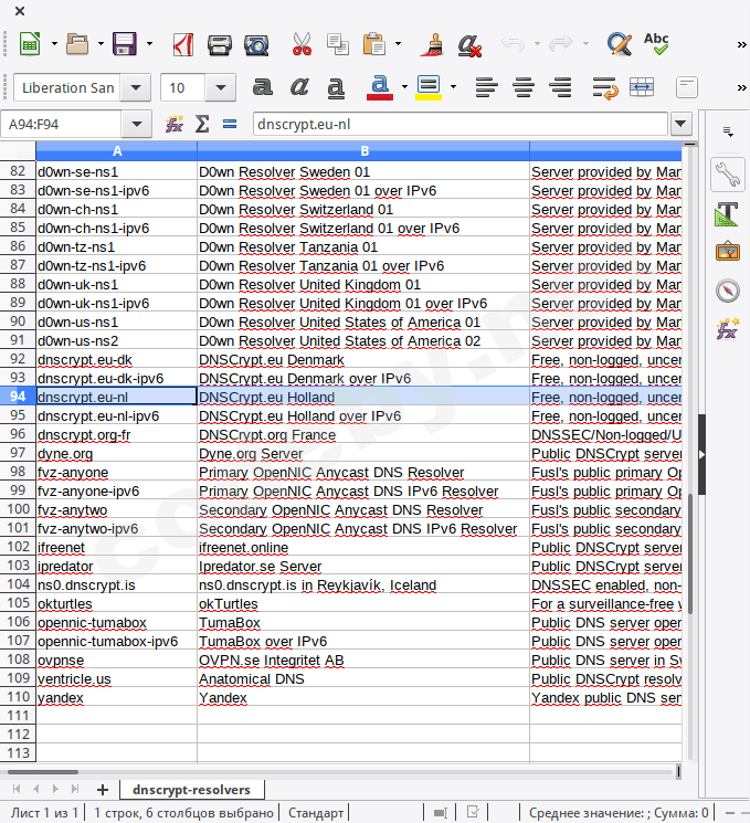 # localc /usr/share/dnscrypt-proxy/dnscrypt-resolvers.csv