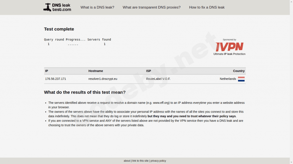 10. И на последок можем проверить результат на сайте DNS leak test